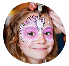 Party guests can choose to have a full face design or something smaller, on one or both sides of the face. Children and adults can choose from a colorful array of choices or suggest a design of their own. All paints are non toxic and hypo-allergenic.